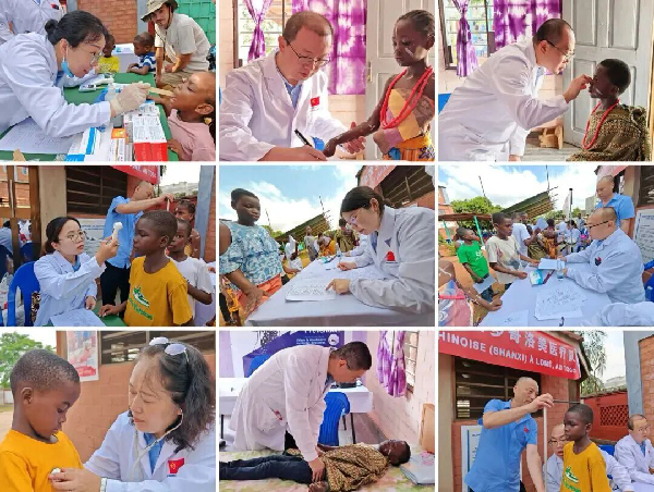 和平医院援非医疗队为孤儿院儿童送健康