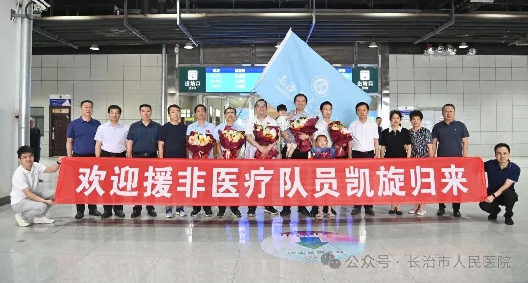 6月23日,中国(山西)第23批援喀麦隆医疗队队员圆满完成为期一年的援非任务,平安凯旋。长治市卫健委副主任吴朝荣,该院党委书记、院长胡文庆,副院长陈贵月、陈锦华、周潞荣、王晚萍,院办主任李海兵,医务科主任金鑫、副主任申剑以及医疗队队员们的家属来到车站,迎接队员们回家。
