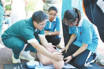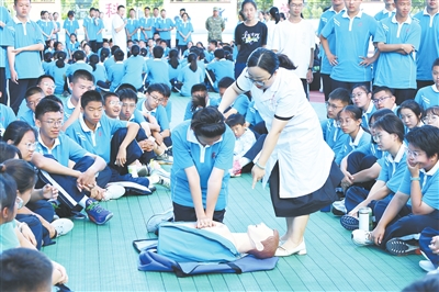 8月28日,长治医学院附属和济医院运营办联合急诊科医生来到长治学院附属太行中学,通过理论加实操的方式,为高一新生开展“心肺复苏”培训活动,普及“心肺复苏”技能,提高学生应对突发事件的处置能力及自救自护水平。