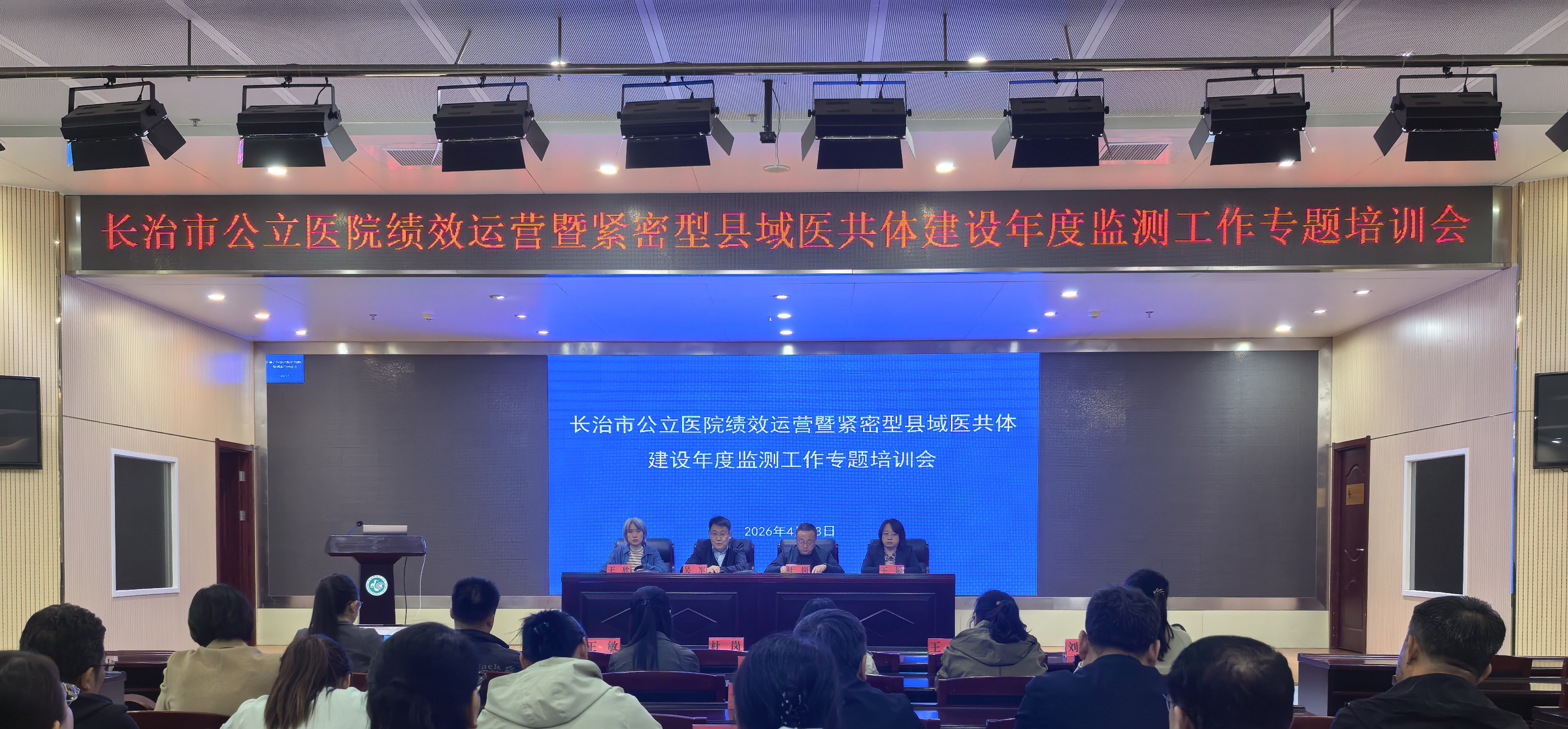 为扎实推进公立医院改革与高质量发展示范项目落地见效,抓实抓细紧密型县域医共体建设年度监测工作,4月23日,长治市卫生健康委员会举办公立医院绩效运营暨紧密型县域医共体建设年度监测工作专题培训会。市卫健委党委委员、副主任吴军,四级调研员、规财科科长杜岗出席会议,各县区卫体局、综合医院、中医医院相关负责人及业务骨干参加培训。