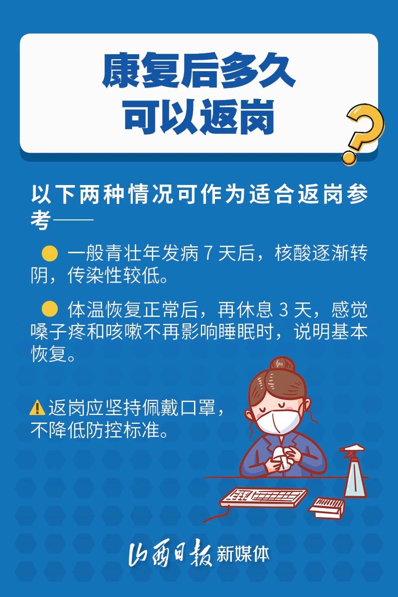 【新冠肺炎科普知识】(二六四)阳性感染者居家治疗康复后多久可以上班?指南来了