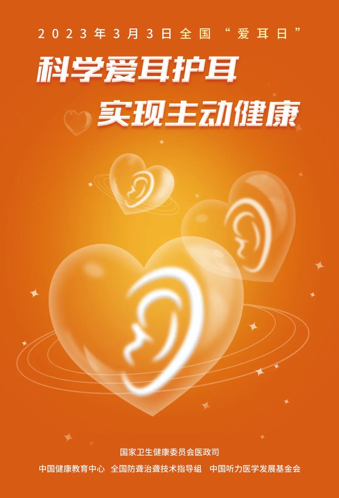2023年3月3日是第二十四个全国爱耳日,今年的主题是“科学爱耳护耳,实现主动健康”。在国家卫生健康委医政司指导下,中国健康教育中心联合全国防聋治聋技术指导组、中国听力医学发展基金会等机构,开发主题宣传海报,拍摄制作主题宣传片,组织实施主题宣传活动,向公众普及科学爱耳护耳健康知识,呼吁公众关注听力健康,养成科学用耳行为,树立耳聋防治理念和信心,做自己健康的第一责任人。
