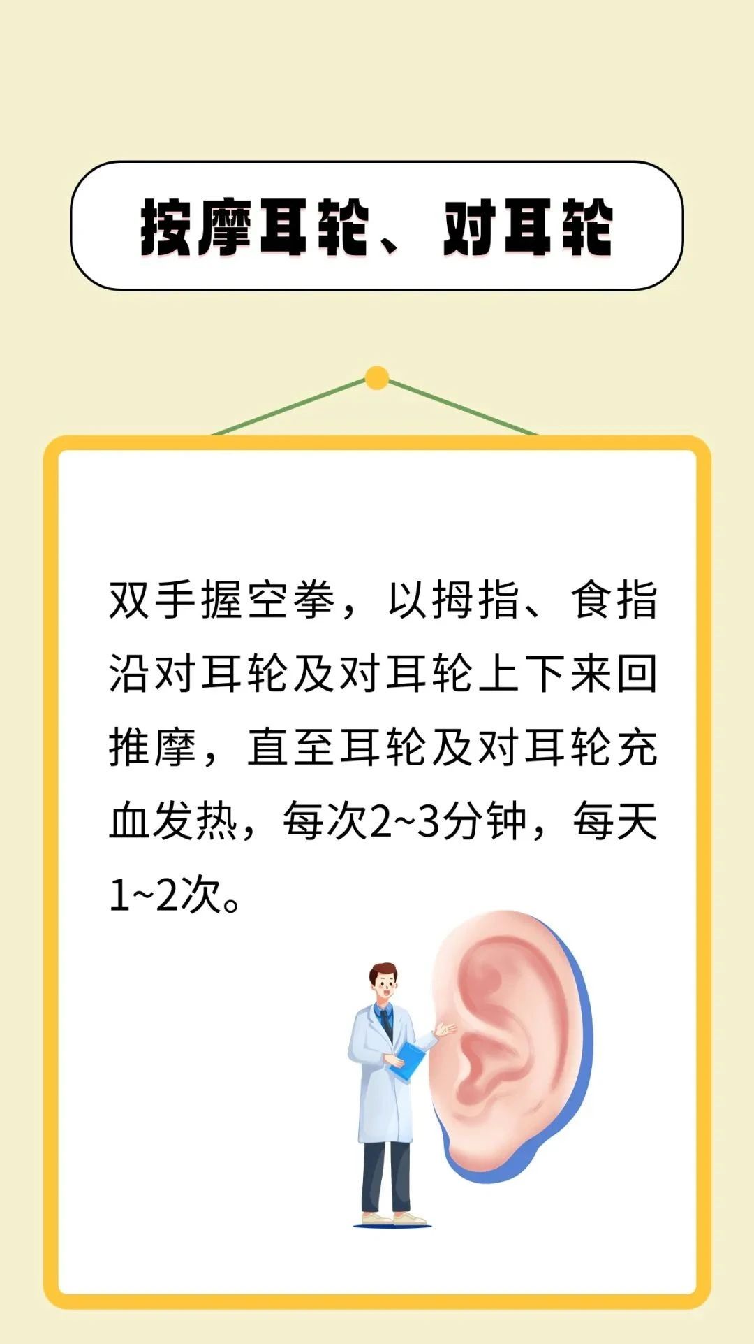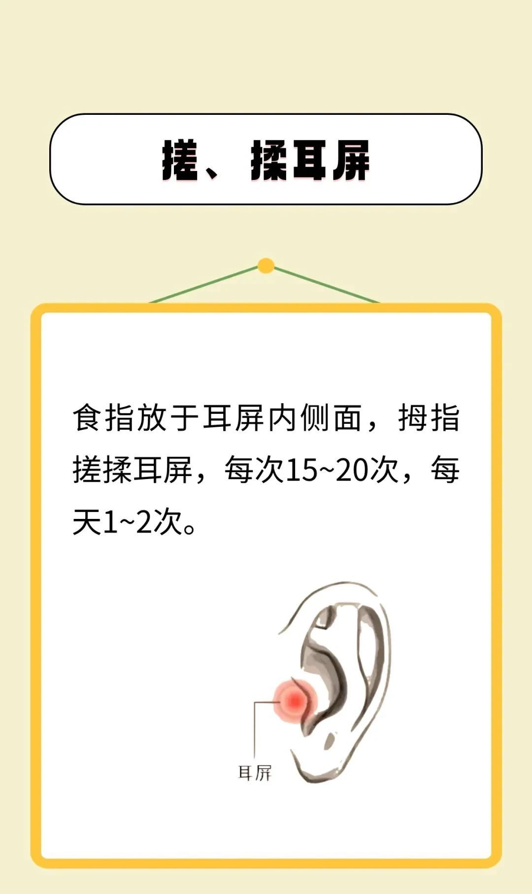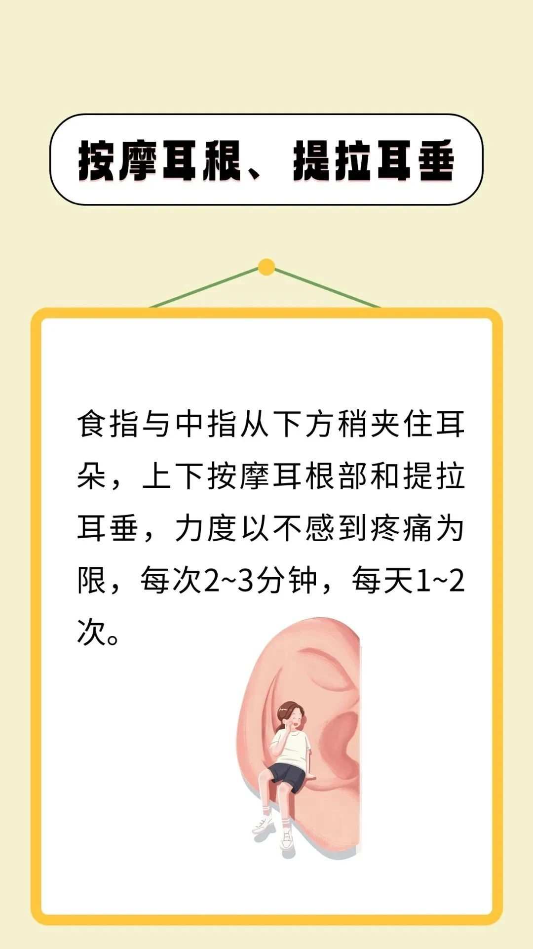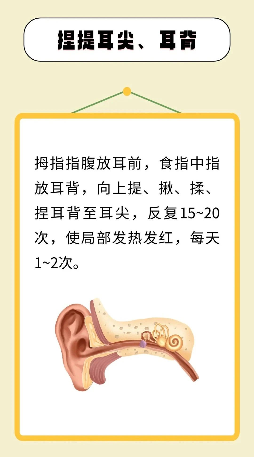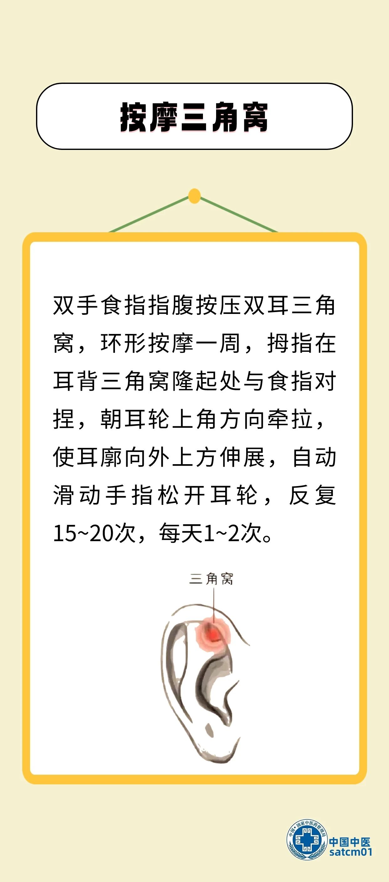 中医认为,耳与人体经络及五脏六腑都有着密切的联系。《黄帝内经·灵枢·口问》说:“耳者,宗脉之所聚也。”人体的内脏或躯体发病时,往往在耳朵的相应部位出现压痛敏感、皮肤电特异性改变和变形、变色等反应,利用这一现象可以作为诊断疾病的参考。这些特定反应区域即耳穴,通过刺激相应耳穴可疏通经气、调节脏腑功能,使五脏精气充盛、经络气血畅达,从而达到防治疾病的效果。下面介绍7个耳部按摩方法,可居家自行练习,坚持按摩很有益处。